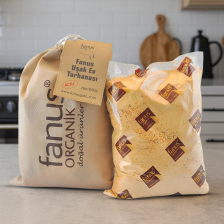 Fanus Uşak Ev Ev Yapımı Tarhana domates,yeşil ve kırmızı kapya biber, soğan, süzme yoğurt, yaş ve kuru nane, tam buğday ununun fermantasyonuyla üretilmektedir.
